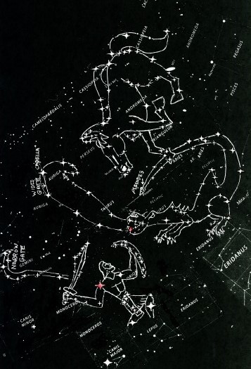 ABOVE STAR CHART: Wikipedia star-charts winter constellation in West with Orion